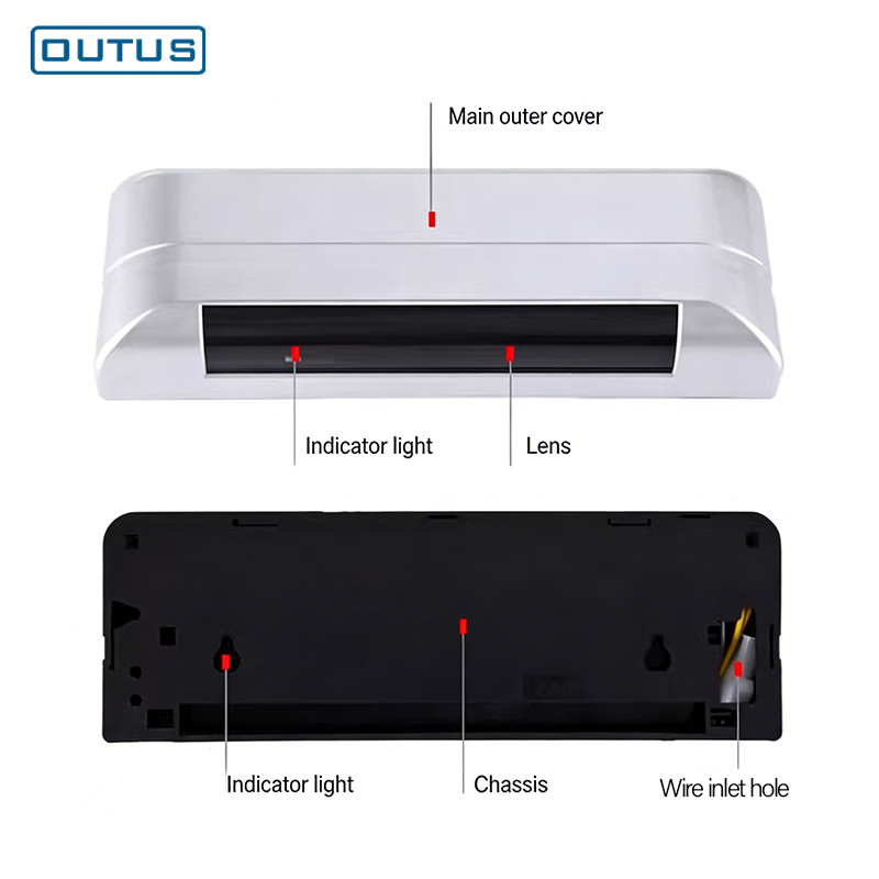1. Emisión y recepción de infrarrojos reflectivos: 8 emisores y 8 receptores; detección precisa de movimiento humano, sin falsas alarmas ni fallos de detección